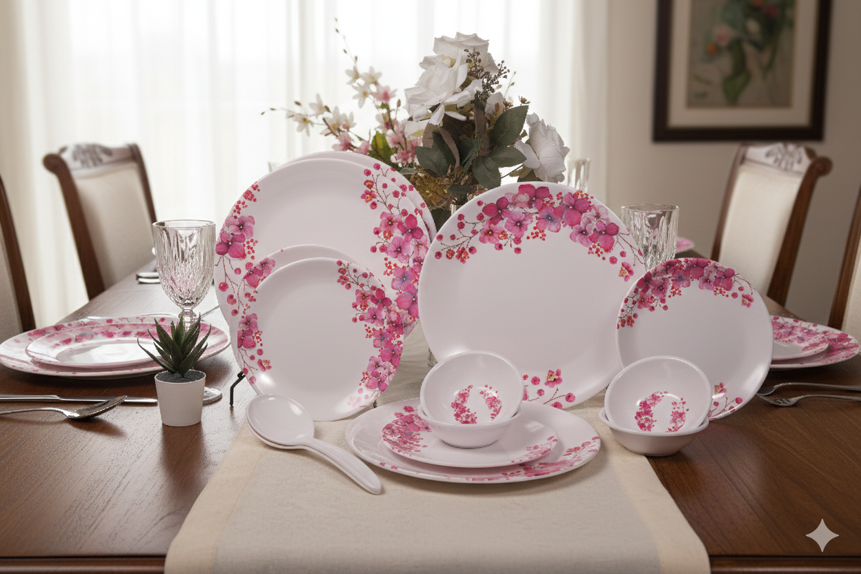Create a complete and coordinated dining experience with the DURODINE 14 PC MELAMINE DINNER SET. Ideal for small families or new homes, this compact dinner set typically includes dinner plates, bowls and side plates or accessories for daily meals. Crafted from premium melamine, the set is durable, break-resistant and designed for long-term use. Its elegant design complements modern kitchen décor, while the stain-resistant, easy-to-clean surface ensures hassle-free maintenance. Perfect for both everyday dining and casual get-togethers, this 14-piece dinner set offers excellent value, style and convenience for contemporary households.
