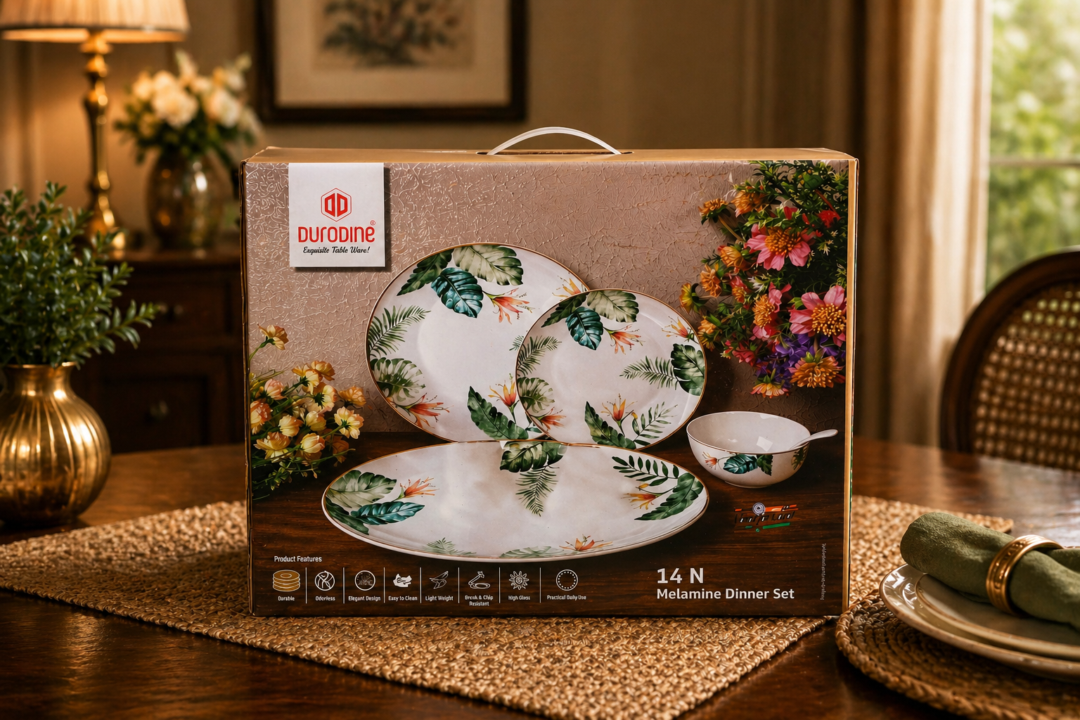14-piece DURODINE melamine dinner set, perfect starter set for small families and everyday dining.