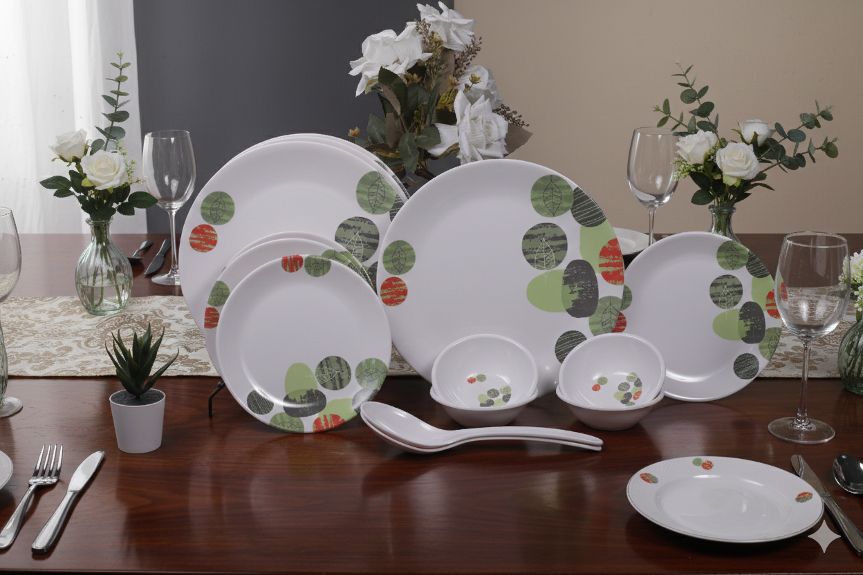 Create a complete and coordinated dining experience with the DURODINE 14 PC MELAMINE DINNER SET. Ideal for small families or new homes, this compact dinner set typically includes dinner plates, bowls and side plates or accessories for daily meals. Crafted from premium melamine, the set is durable, break-resistant and designed for long-term use. Its elegant design complements modern kitchen décor, while the stain-resistant, easy-to-clean surface ensures hassle-free maintenance. Perfect for both everyday dining and casual get-togethers, this 14-piece dinner set offers excellent value, style and convenience for contemporary households.