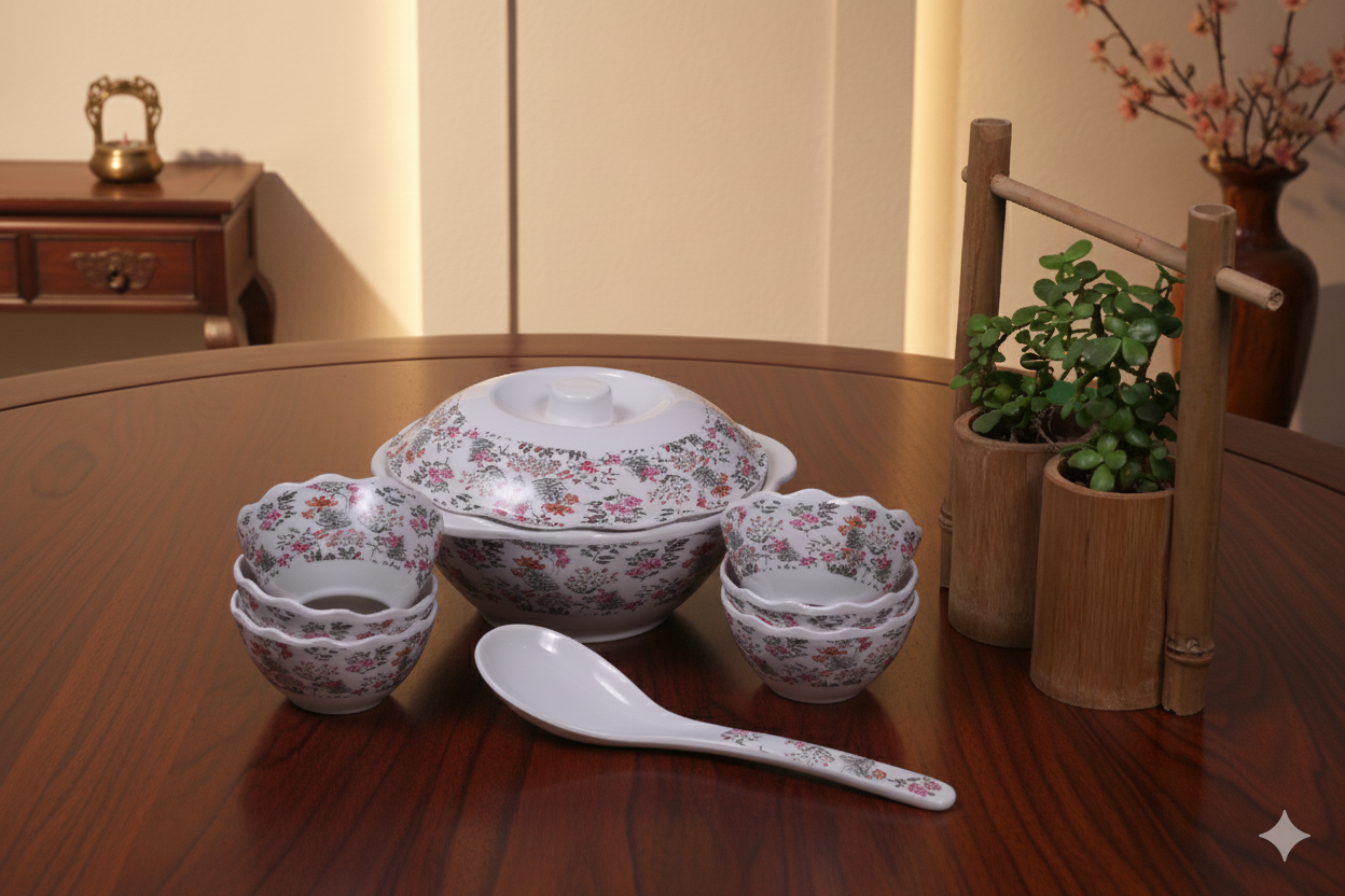 The DURODINE 9 PC MELAMINE DESSERT SET is crafted using premium melamine to offer durability, hygiene and long-lasting performance. It is fully BPA-free and food-safe, ensuring healthy meals every day. The surface is heat and scratch resistant, making it perfect for long-term daily usage in homes, restaurants or catering. This premium Indian-made product is lightweight, break-resistant and designed to maintain shine even after repeated washing.