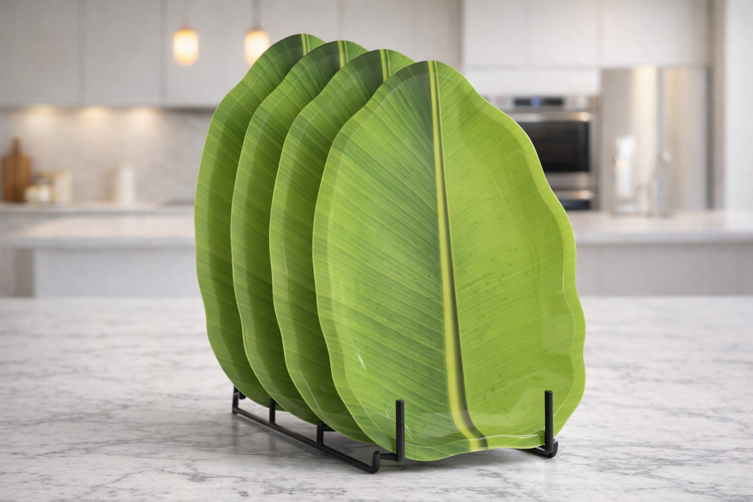 The DURODINE BANANA LEAF 16″ TRAY – GREEN is crafted using premium melamine to offer durability, hygiene and long-lasting performance. It is fully BPA-free and food-safe, ensuring healthy meals every day. The surface is heat and scratch resistant, making it perfect for long-term daily usage in homes, restaurants or catering. This premium Indian-made product is lightweight, break-resistant and designed to maintain shine even after repeated washing.