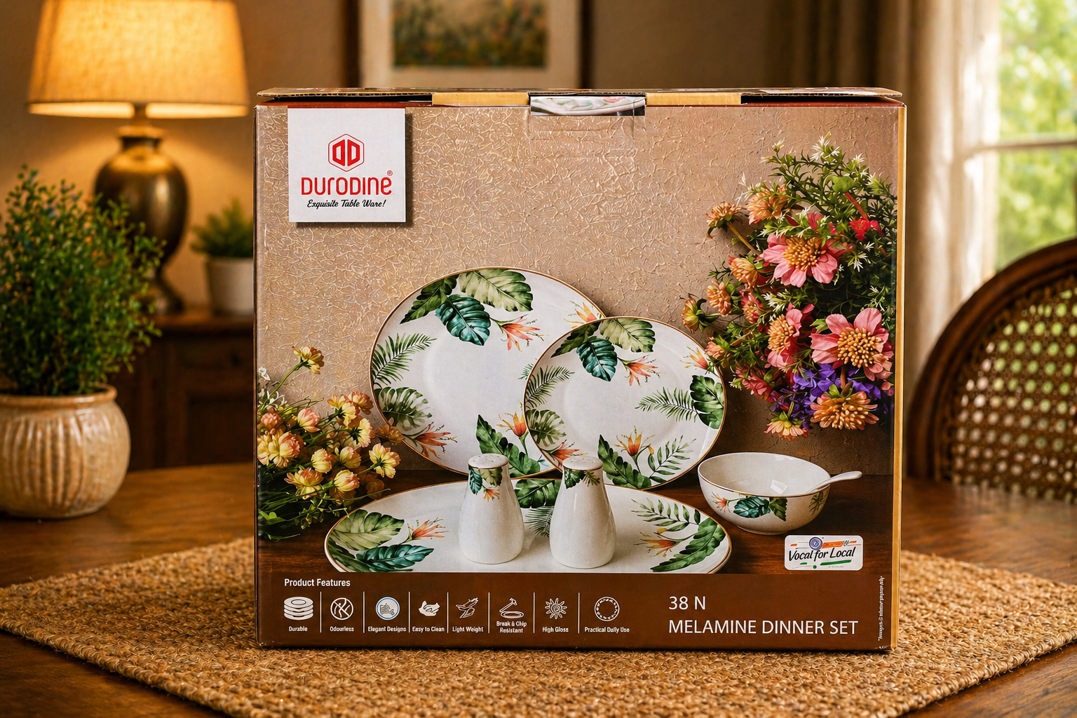 38-piece DURODINE melamine dinner set suitable for medium-sized families and regular hosting.