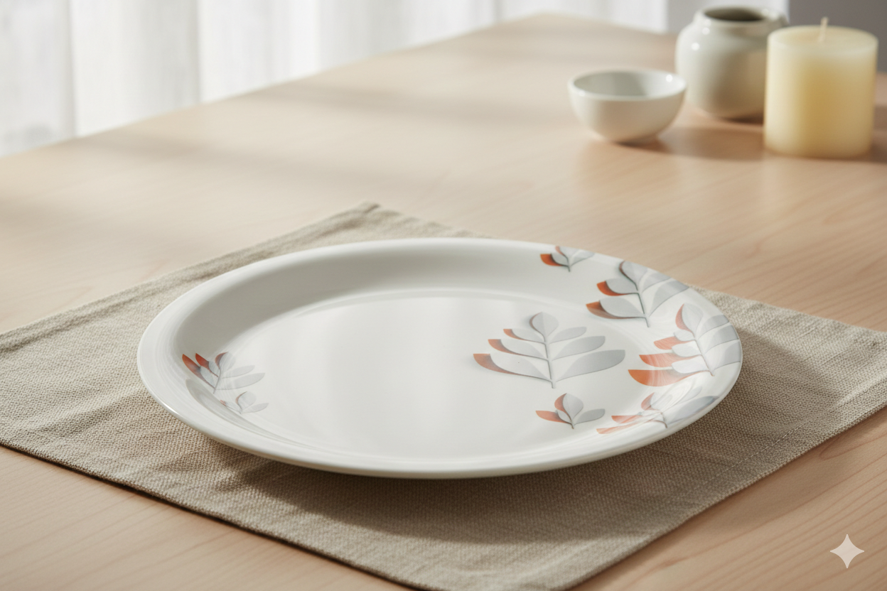 The DURODINE DURO ROUND 12” THALI is crafted using premium melamine to offer durability, hygiene and long-lasting performance. It is fully BPA-free and food-safe, ensuring healthy meals every day. The surface is heat and scratch resistant, making it perfect for long-term daily usage in homes, restaurants or catering. This premium Indian-made product is lightweight, break-resistant and designed to maintain shine even after repeated washing.