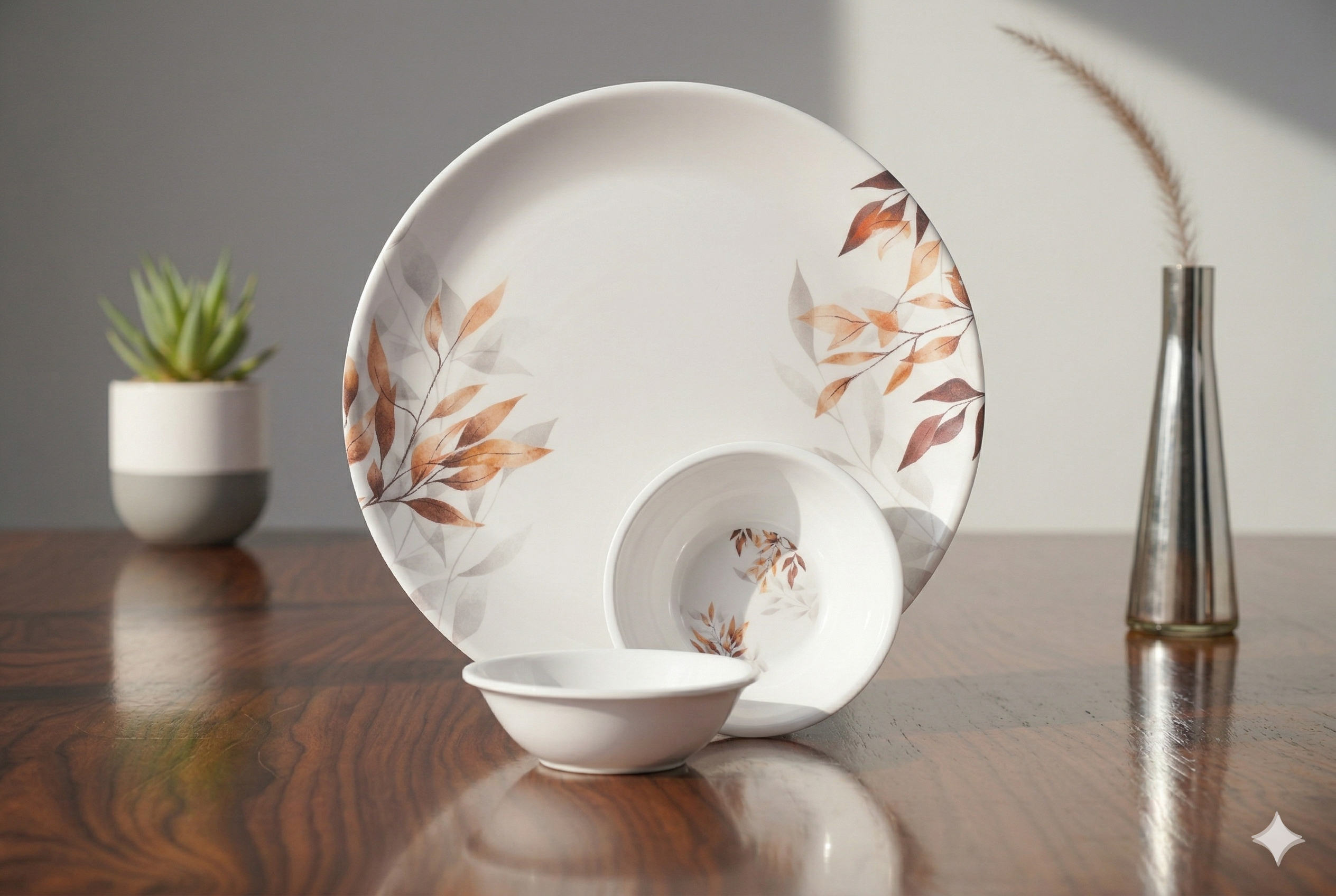 Be the first to review “DURODINE MELAMINE PLATE & BOWL SET OF 3 (Brass Leaf)”