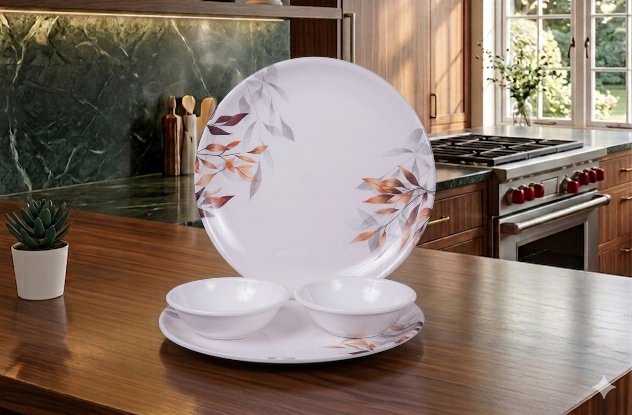 The DURODINE MELAMINE PLATE & BOWL SET OF 4 is designed to bring harmony and elegance to your dining table. This set offers a perfect combination of plates and bowls, suitable for serving full meals, breakfast, snacks or desserts to small families or guests. Made from high-grade melamine, the pieces are durable, break-resistant and safe for everyday use. The coordinated design ensures a uniform table look, making it ideal for both daily dining and small gatherings. Lightweight, easy to clean and resistant to stains, this set is an excellent choice for modern homes and as a thoughtful gift option.