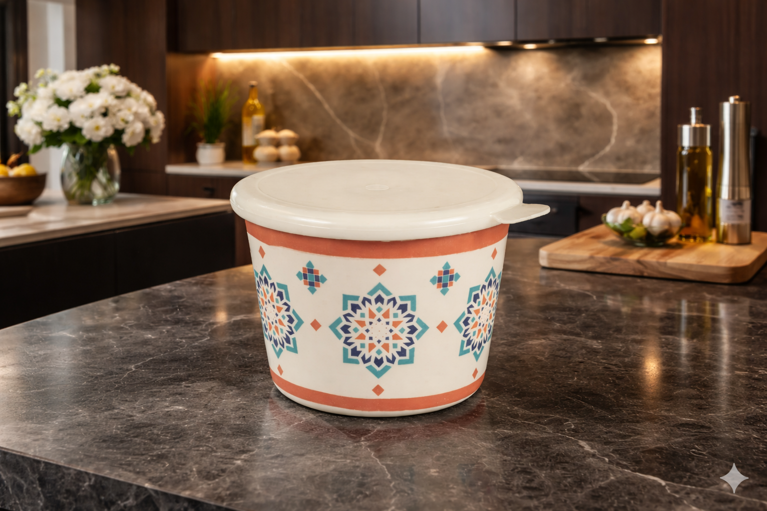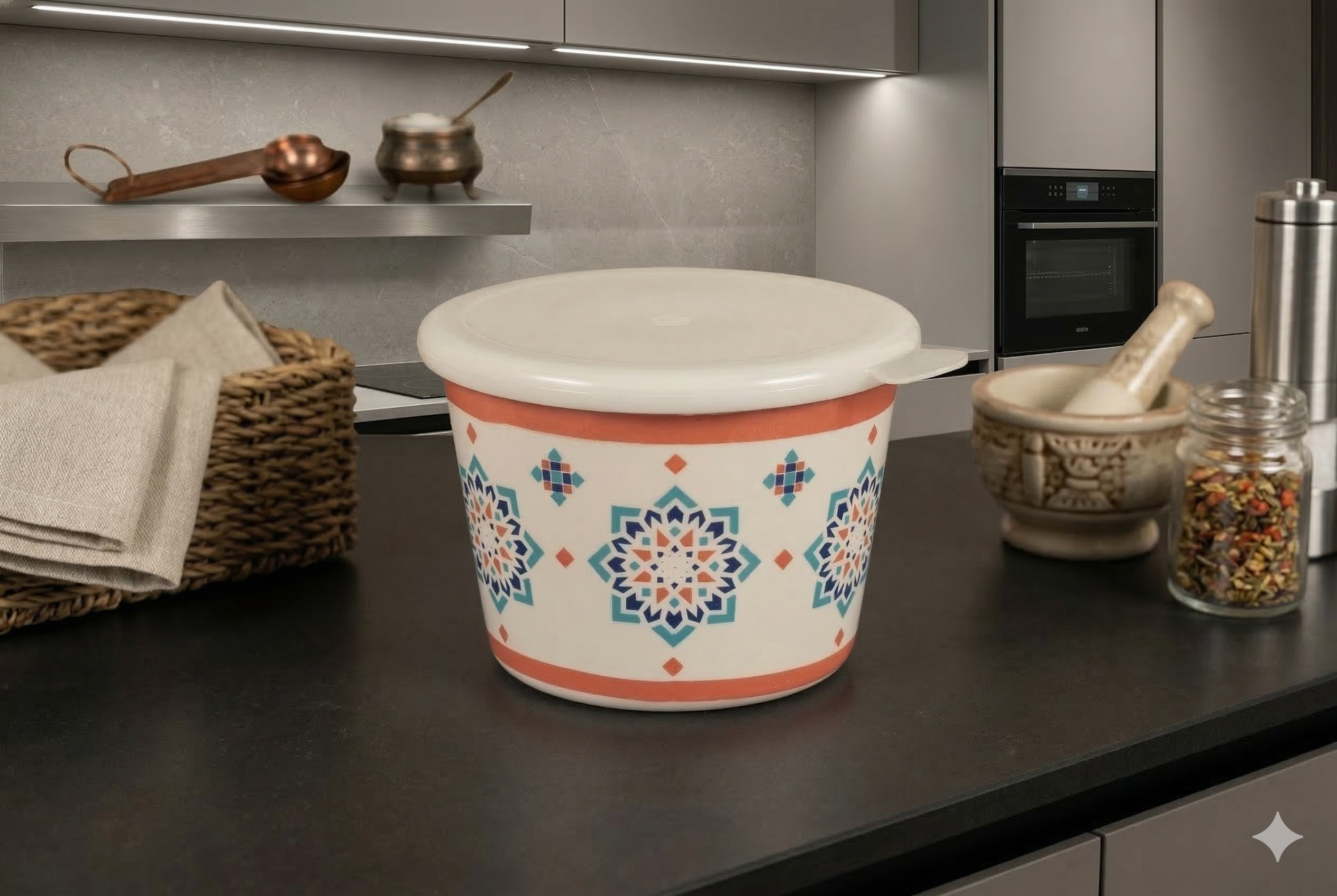 DURODINE MULTIPURPOSE AIRTIGHT JAR WITH LID – MEDIUM made with premium melamine. BPA-free, food-safe, heat & scratch resistant, and break-resistant. Ideal for daily use.