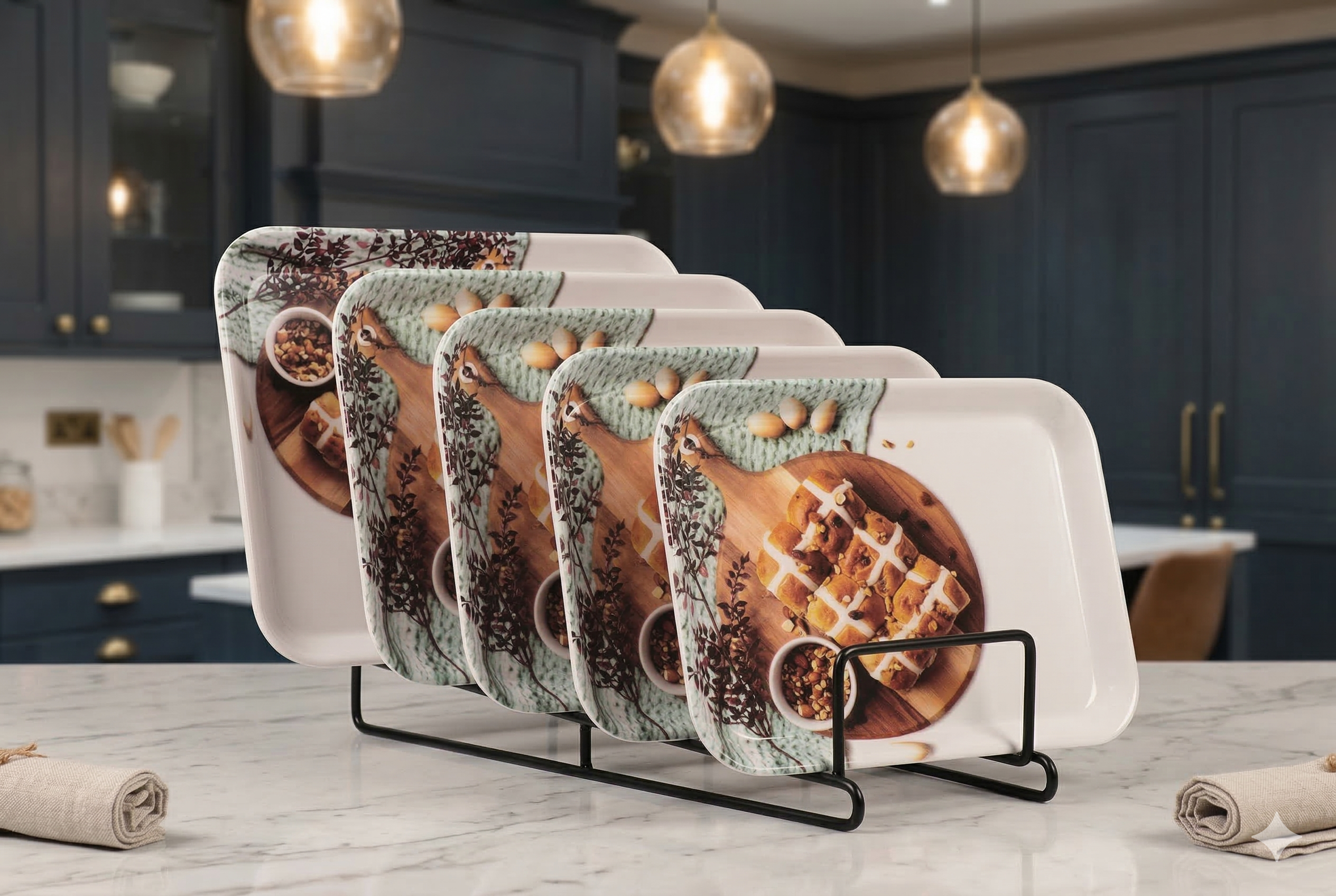The DURODINE RECTANGULAR TRAY SMALL is a practical and stylish serving solution for everyday use. Its compact rectangular design makes it ideal for serving tea, coffee, juice, snacks or single-person meals without taking up too much table space. Made from sturdy melamine, the tray is lightweight yet strong, offering excellent grip and ease of handling. It is resistant to breakage, stains and odours and can be quickly cleaned after use. Ideal for homes, hostels, offices and cafés, this small tray is perfect when you need something handy, functional and presentable for daily serving needs.